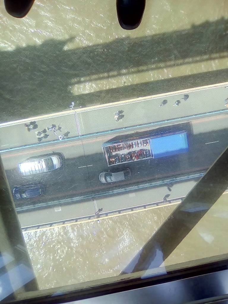 However, I found the most exciting part of the tour was being on the top walkway where a glass floor has been added. We were told that the glass floor was able to hold several elephants. Nevertheless it was an eerie yet hilarious experience standing and watching the city traffic crossing the bridge so far below us.
