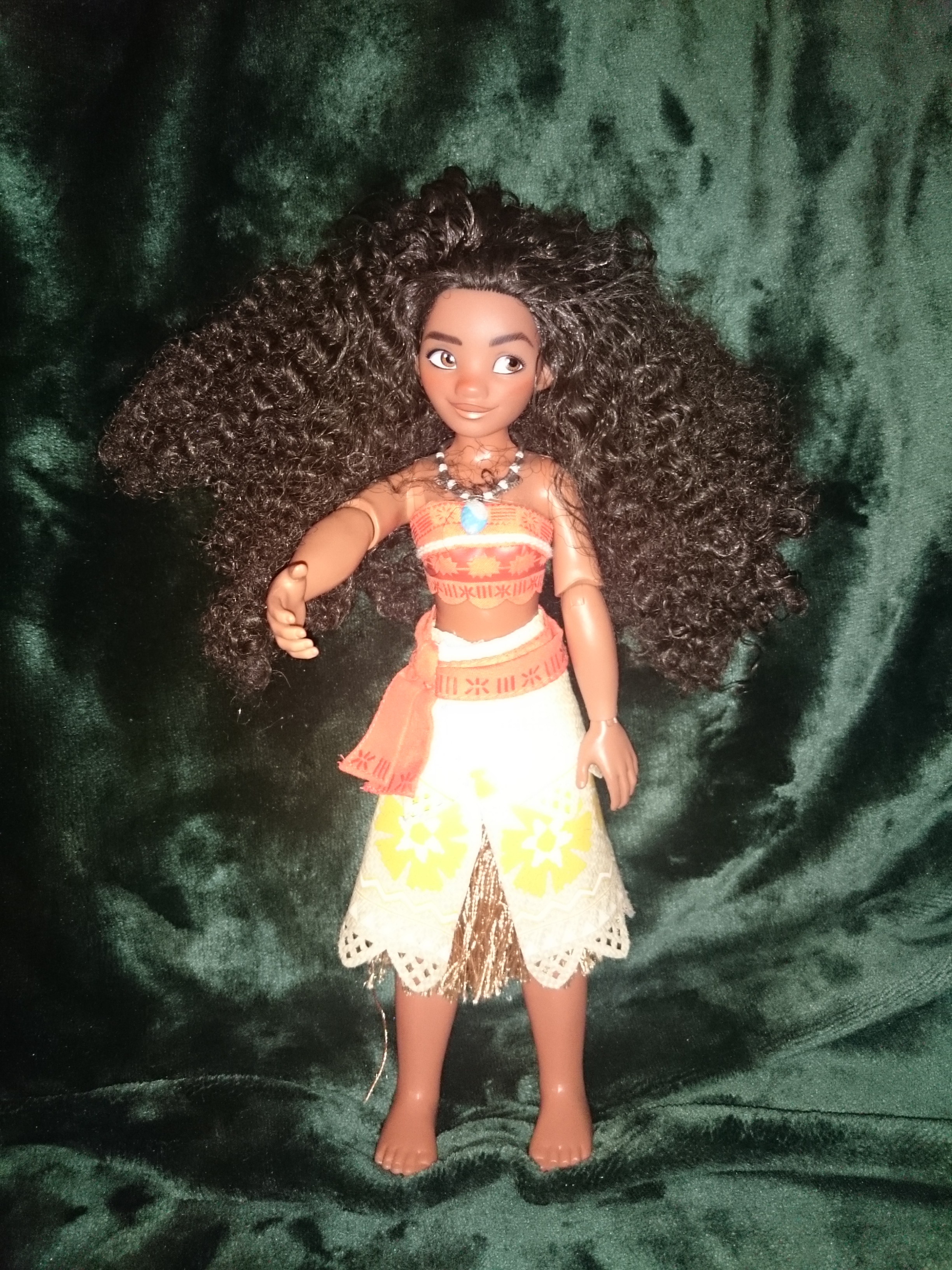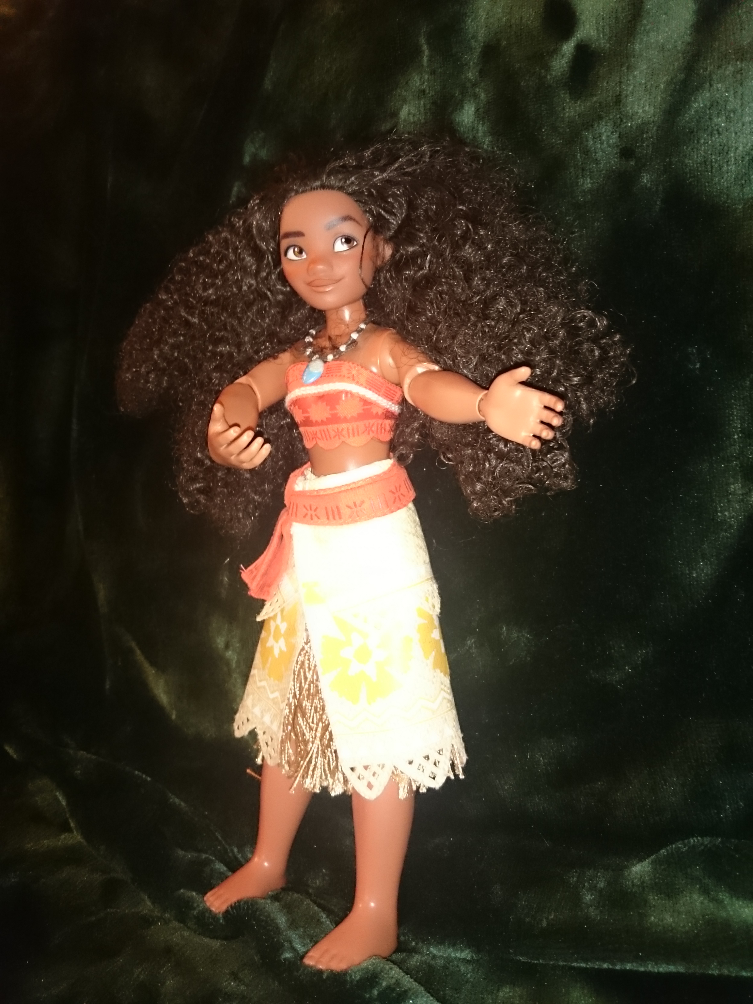 I got Moana in 2016 after I saw the film. She is one of my favourites because I like her hair and her outfit and think that the doll looks very much like Moana does in the film. I was a little disappointed that she didn’t have a figurine of Pua or Hei Hei.