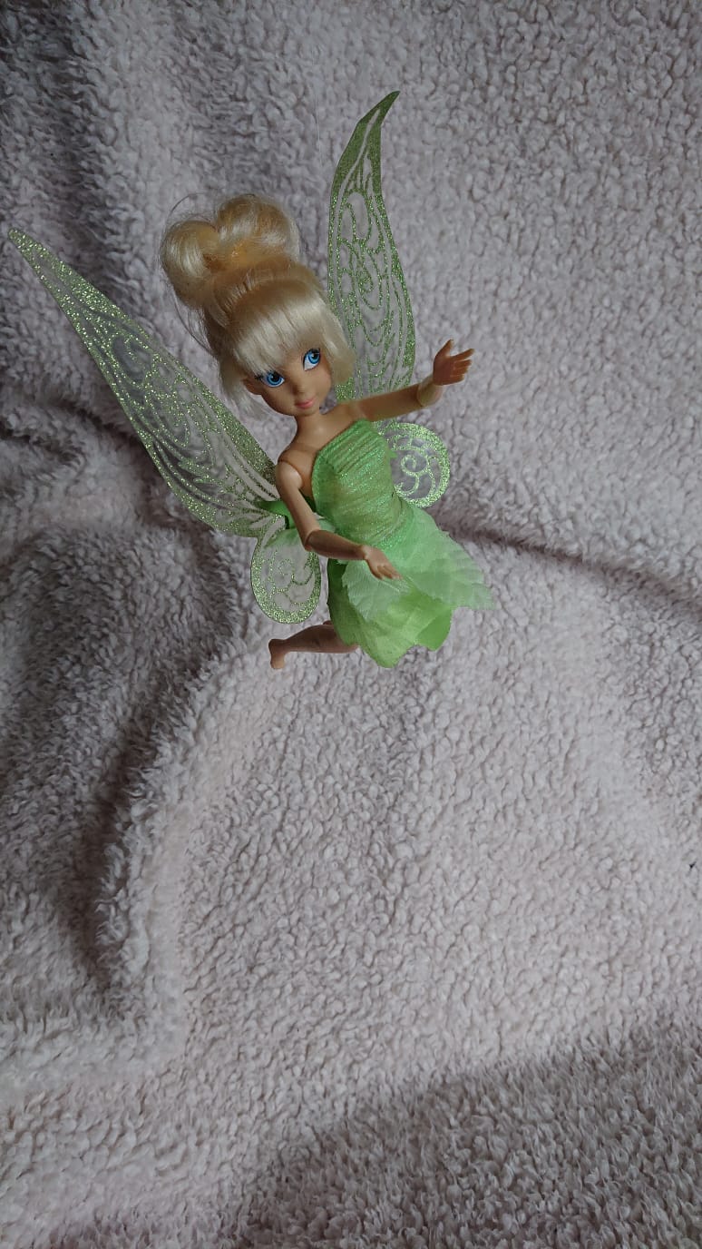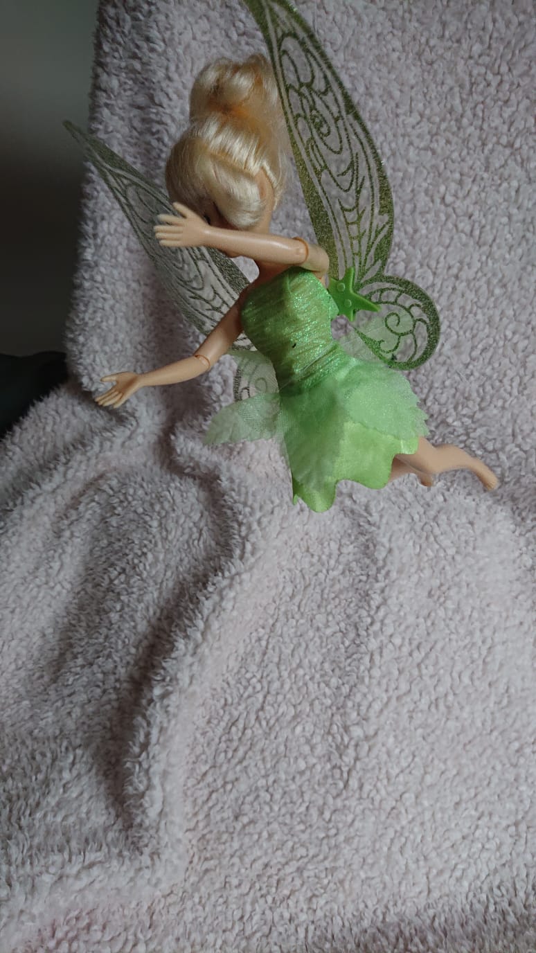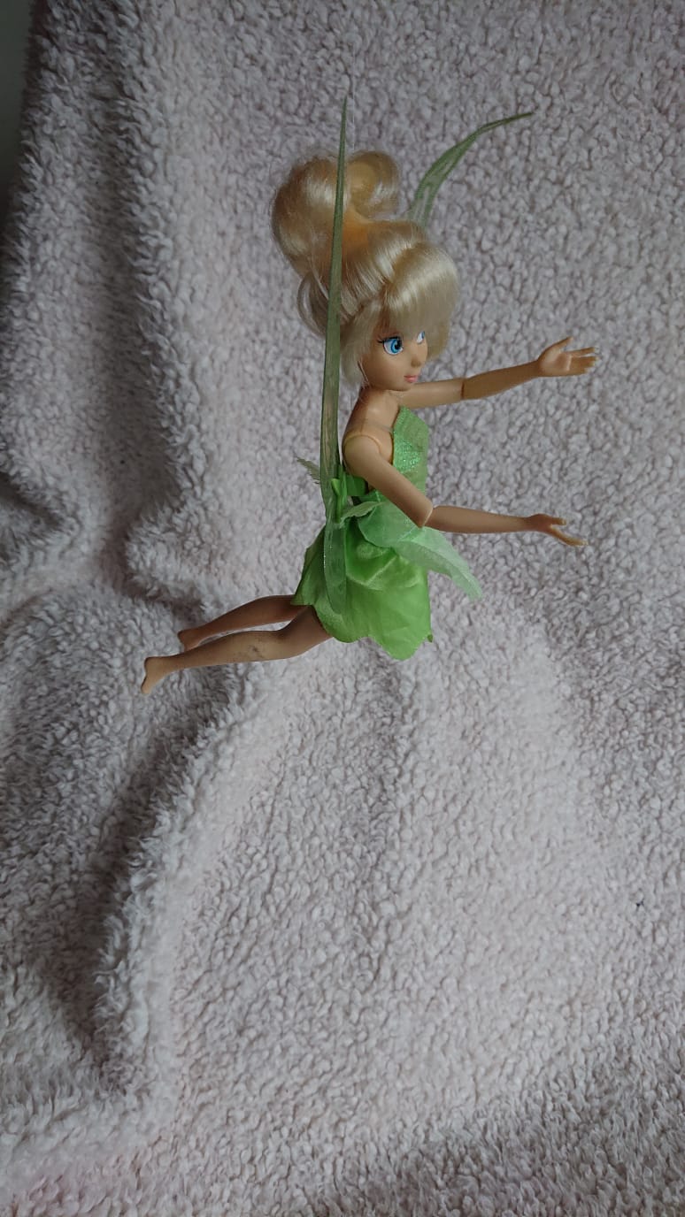 My mum bought me this Tinkerbell doll as I watched again after a long time and very much enjoyed reading the book by J.M Barrie. This doll is second hand, I chose her because she is a smaller doll and because she depics the character very well.